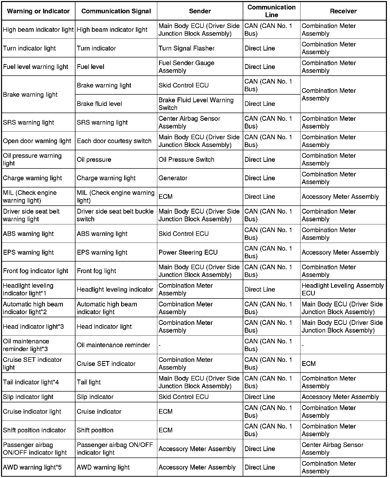 * *1: w/ Automatic Type Headlight Beam Level Control