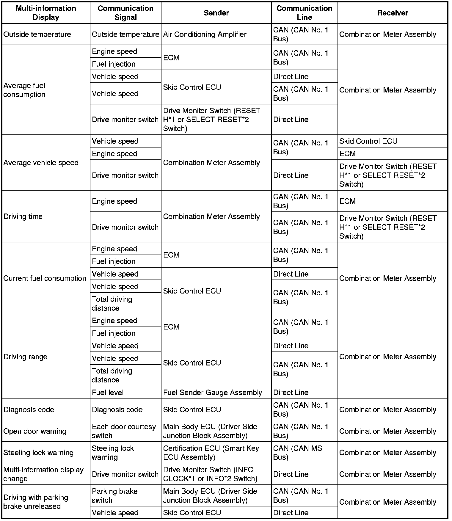 * *1: w/o Rear View Monitor System