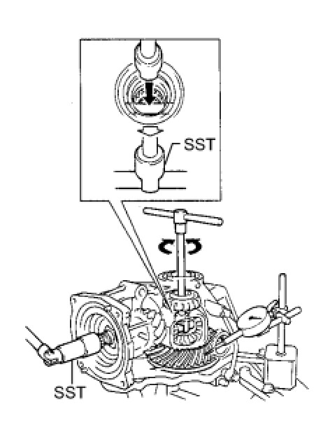(a) Using SST and a torque wrench, inspect the differential drive pinion preload (starting torque) of the backlash between the differential drive pinion and differential ring gear.