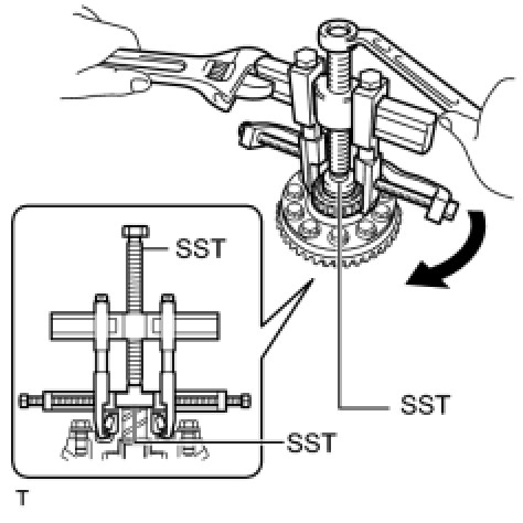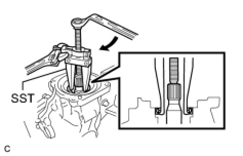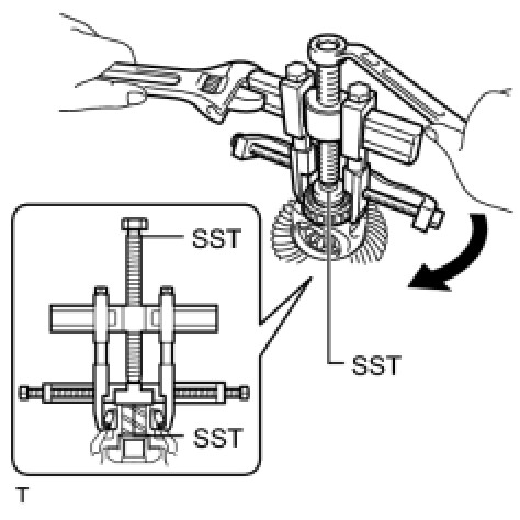 (a) Using SST, remove the rear differential case bearing (RH side inner race) from the rear differential case sub-assembly.