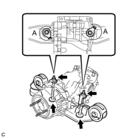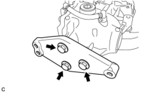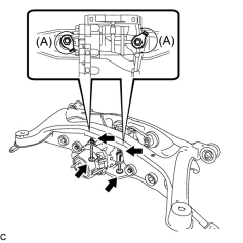 (a) Temporarily install the rear differential carrier assembly with differential support to the rear side of the rear suspension member assembly with the 3 rear mounting bolts.