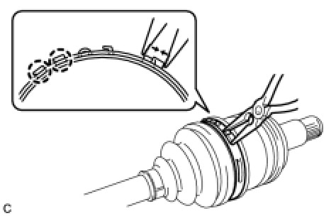 (a) Using needle-nose pliers, engage the 2 claws to install a new No. 2 rear drive shaft inboard joint clamp as shown in the illustration.