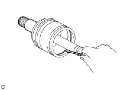 (a) Wrap the spline of the outboard joint shaft with vinyl tape to prevent the boot from being damaged.