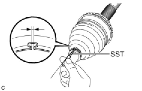 (c) Place SST onto the rear drive shaft outboard joint boot clamp.