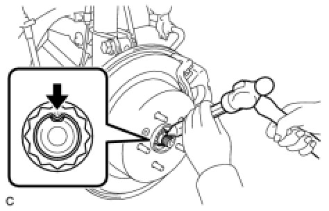 (c) Using a chisel and hammer, stake the rear axle shaft nut.