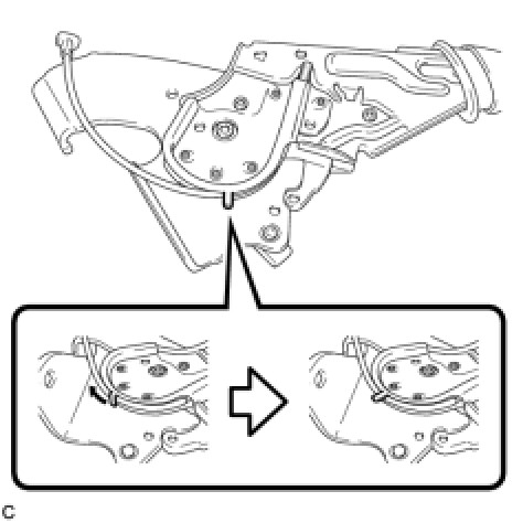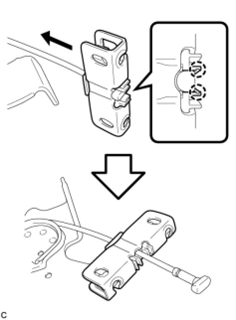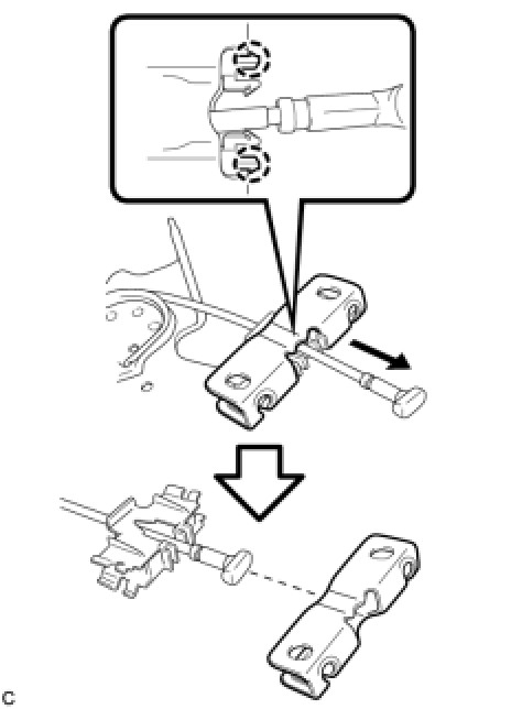 (b) Disengage the 2 claws to remove the parking brake equalizer from the parking brake cable end stopper.