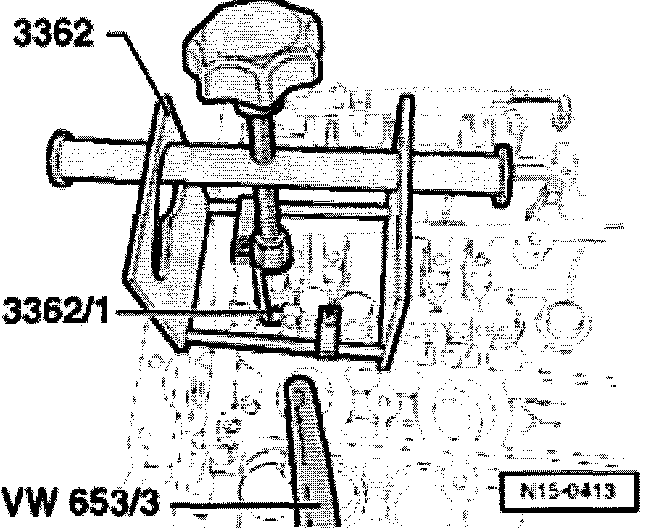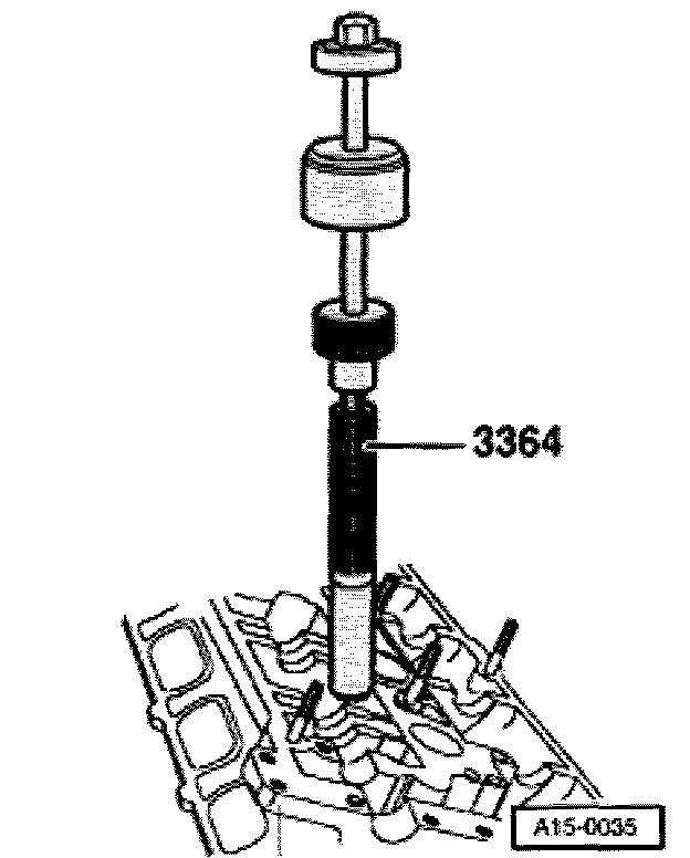 - Insert thrust piece 3362/1 in valve spring depressor 3362.
