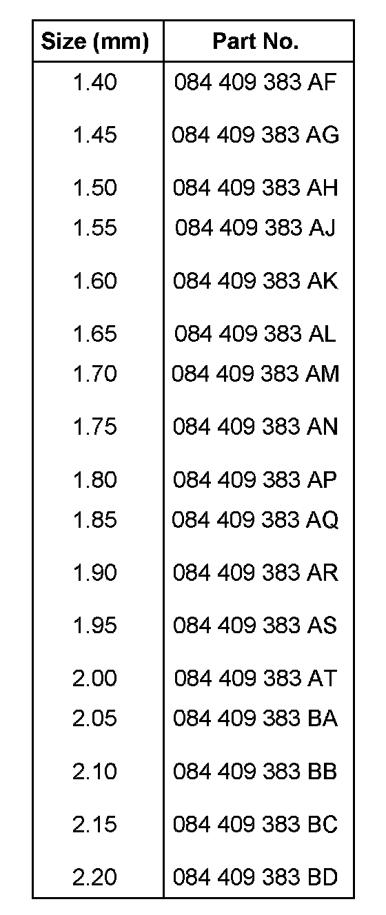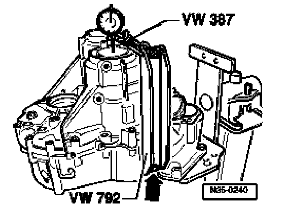 Note: If the dial gauge indicates no value when the clutch housing/transmission housing securing bolts are loosened, install shim 1.95 mm (Part No. 084 409 383 AS) or, if necessary, shim 2.20 mm (Part No. 084 409 383 BD).