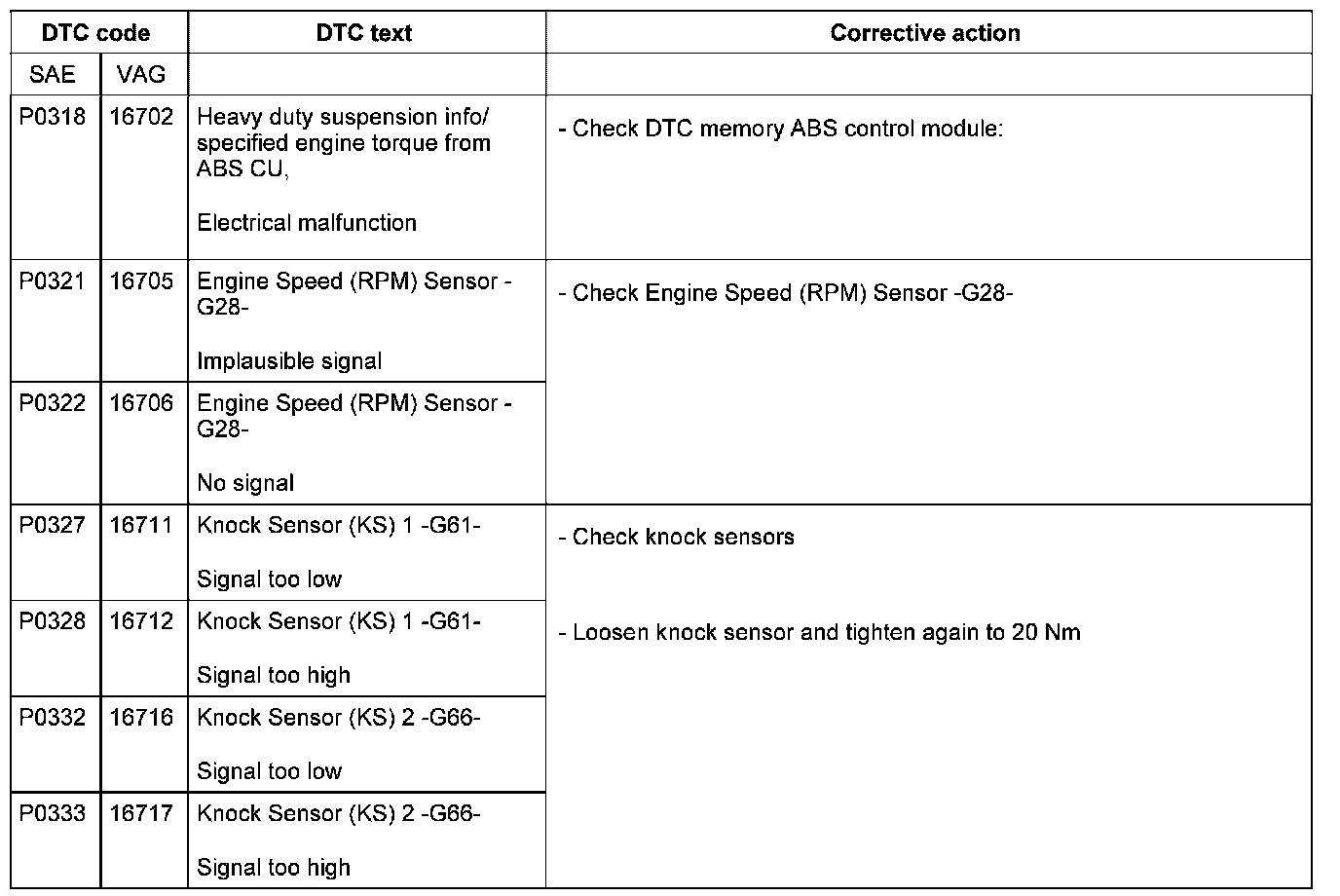 DTC P0318 - P0333: