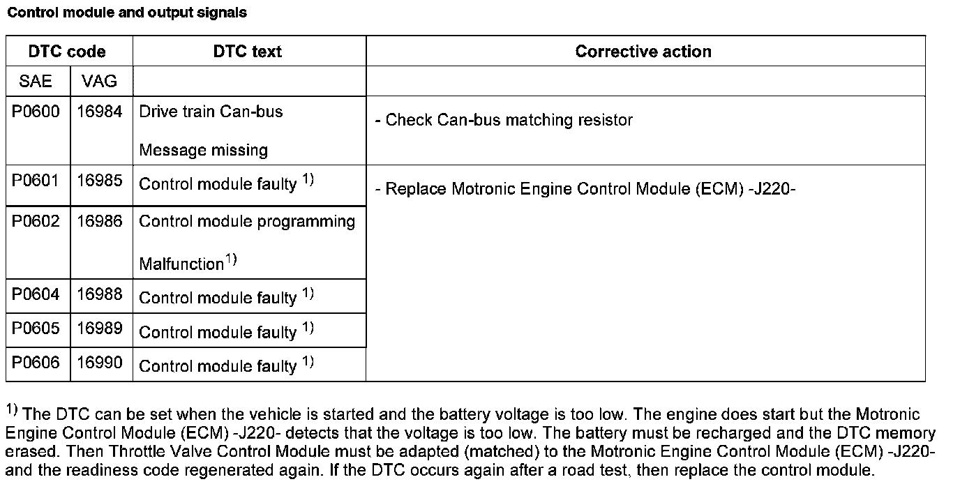 DTC P0600 - P0606: