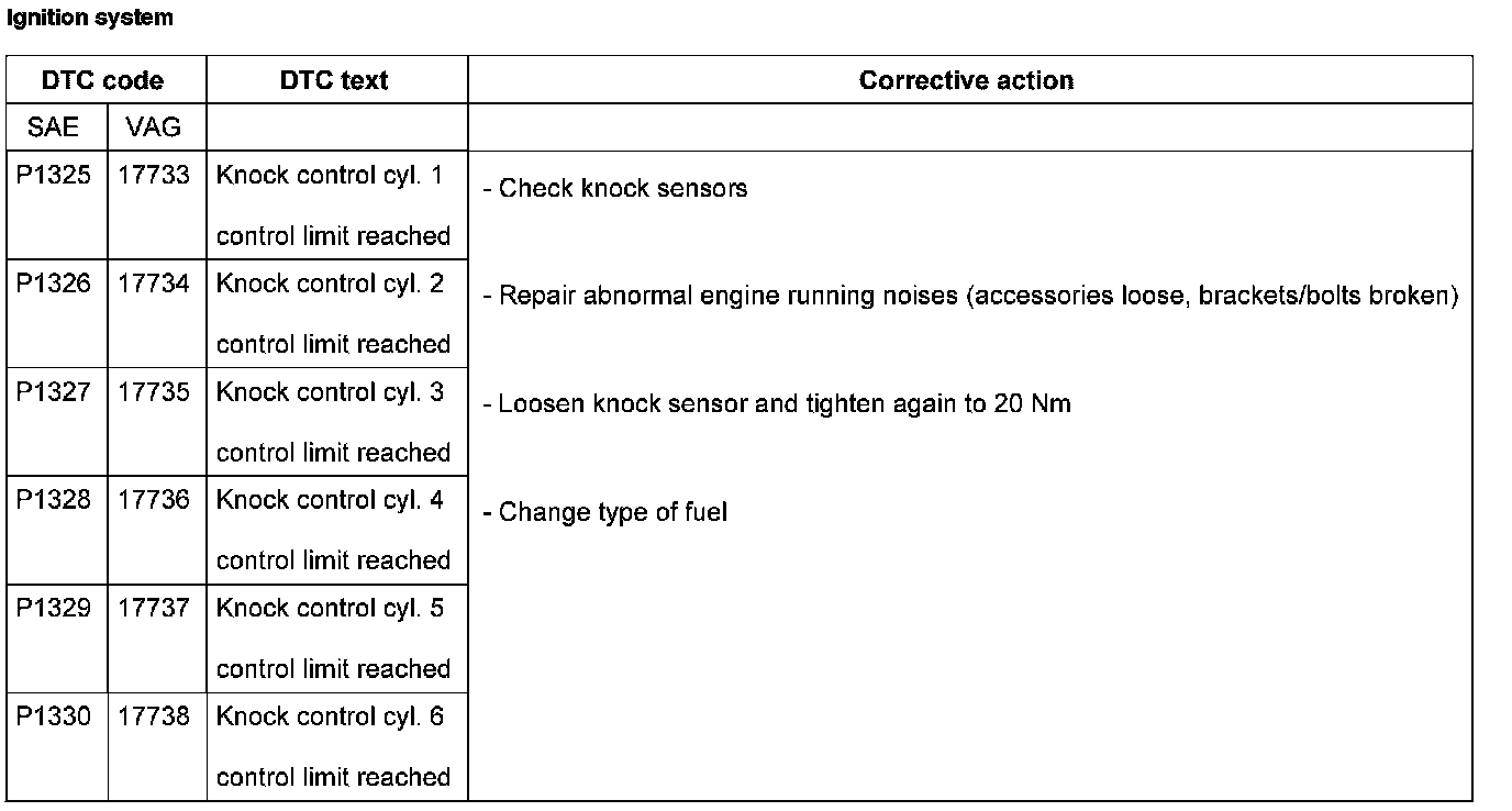 DTC P1325 - P1330: