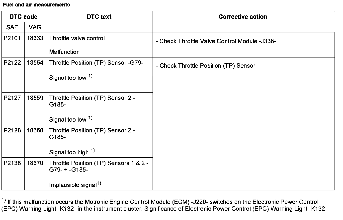DTC P2101 - P2138: