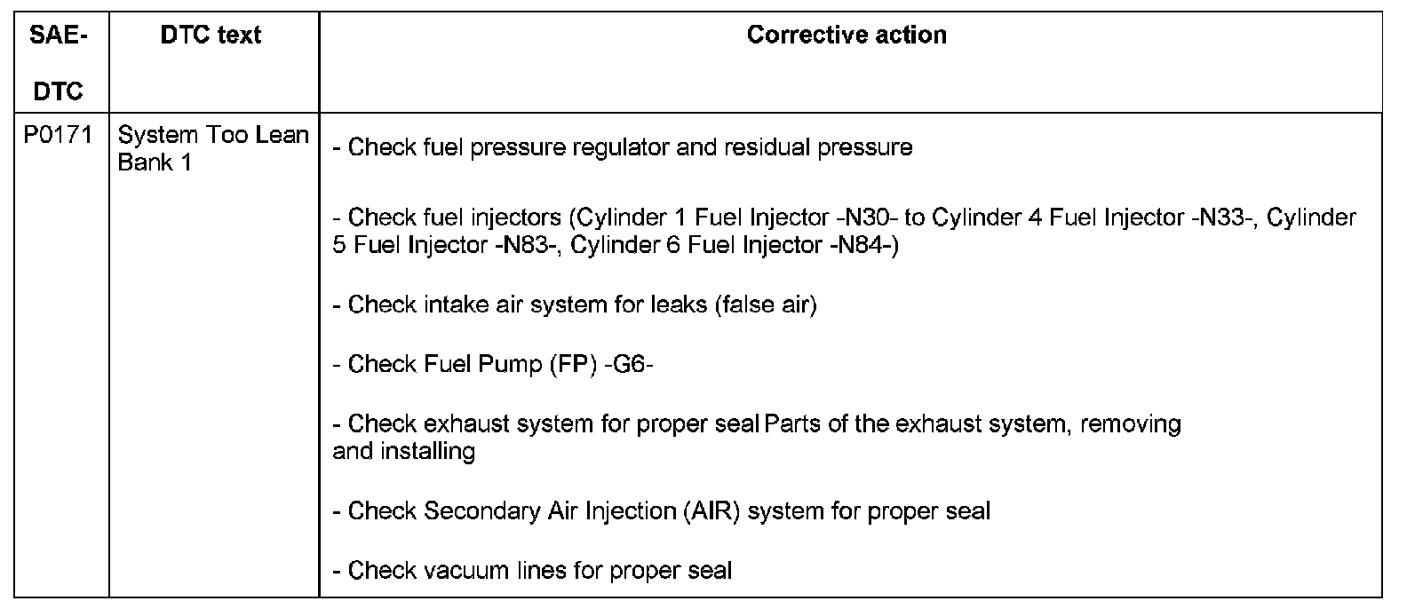 DTC P0171: