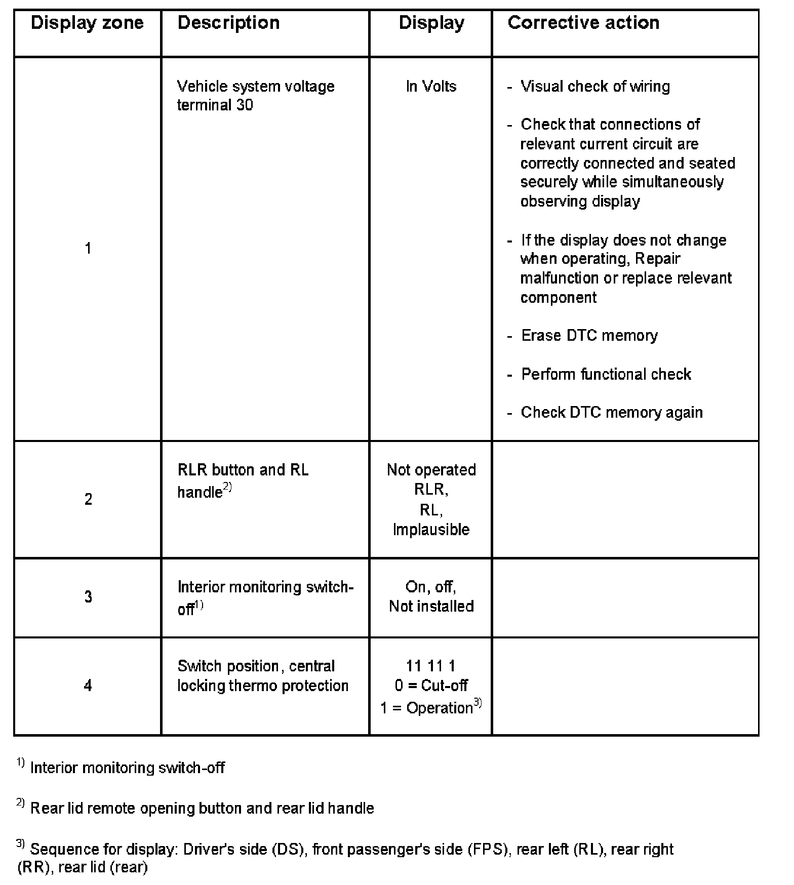 Display Zone 1 - 4: