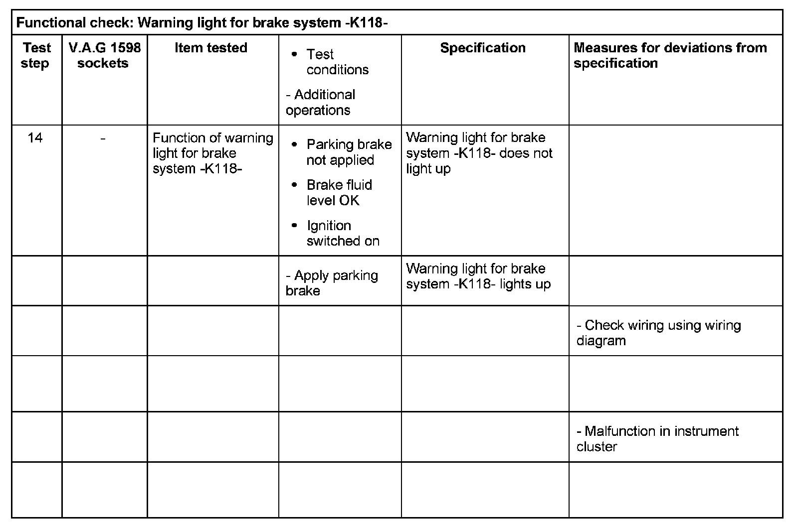 - Continuity checks with adapter set VAG 1594 A (bridging).