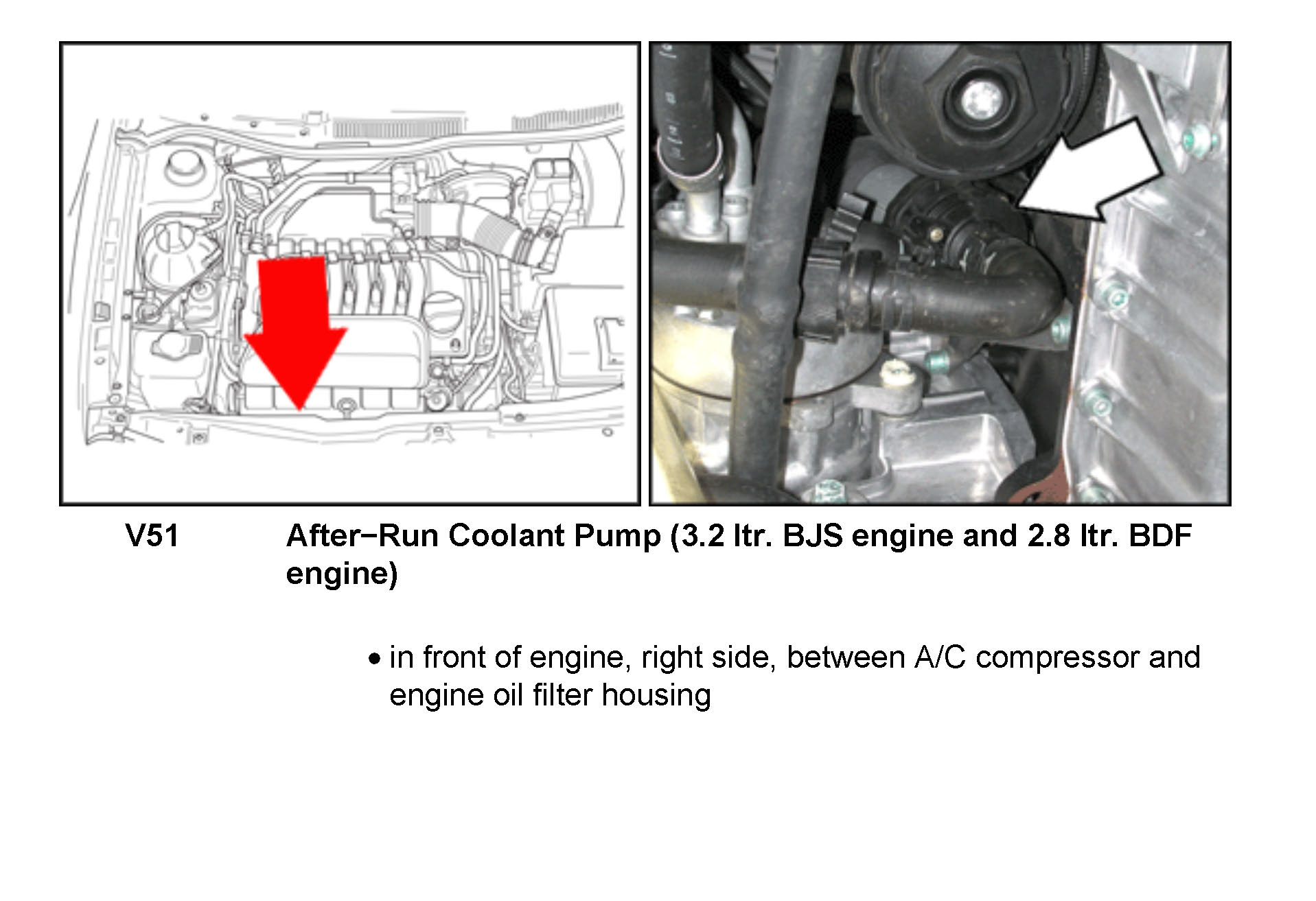 V51 - After-Run Coolant Pump (3.2 ltr. BJS engine and 2.8 ltr. BDF engine)