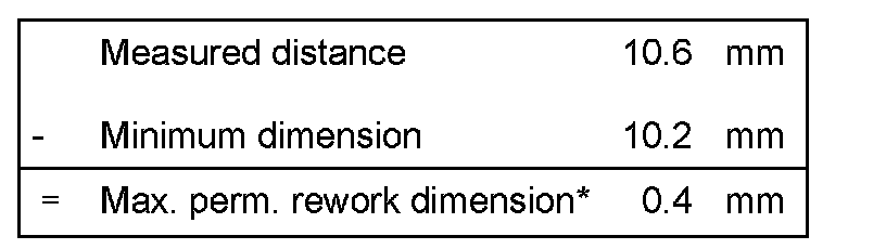 Measured distance minus minimum dimension = Max. permissible reworking dimension.