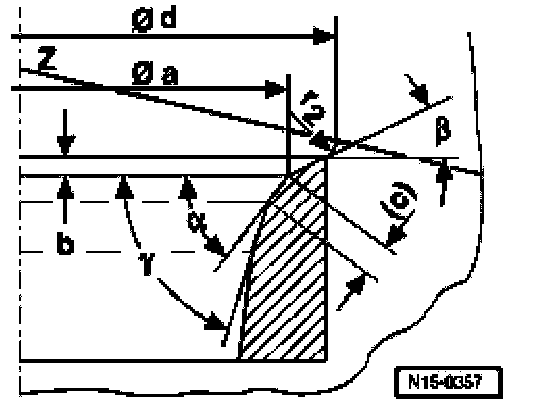 - Calculate max. permissible reworking dimension from measured distance -a- and minimum dimension.