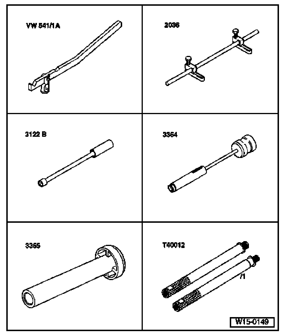 - Remove valve springs with assembly lever VW 541/1A and thrust piece VW 541/6.
