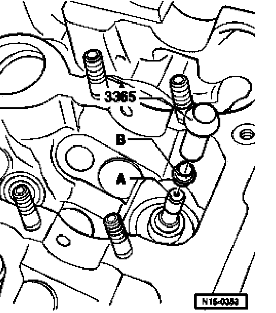 - Oil sealing lip of valve stem seal -B- insert in fitting tool 3365 and carefully push onto valve guide.
