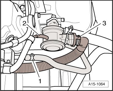 - Disconnect the connecting hose -3- and the vacuum hose 2- from the Secondary Air Injection (AIR) combination valve.