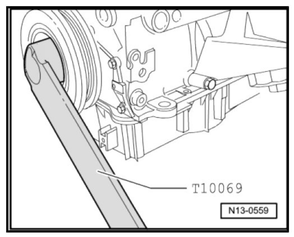 - Secure the vibration damper using the counter -hold tool- T10069- when doing so.
