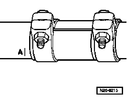 - Position new double clamp, as illustrated, approximately 5 mm distance from markings -A- and tighten.