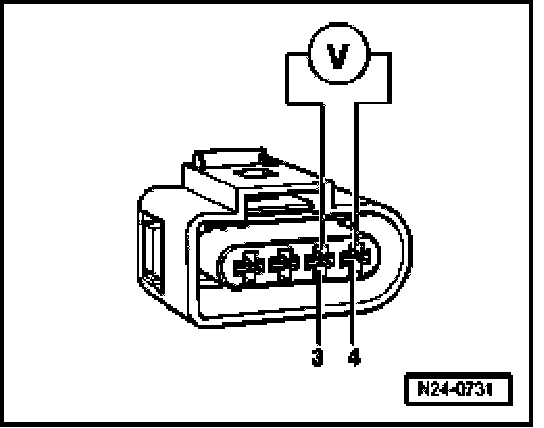 - Connect multimeter for voltage measurement to terminals 3 + 4 of connector to Engine Control Module (ECM) and measure primary voltage.