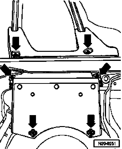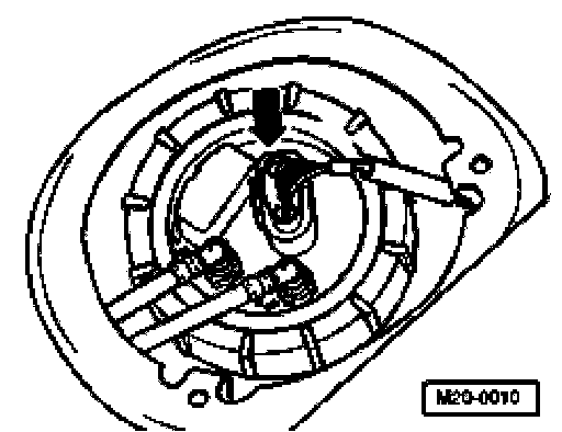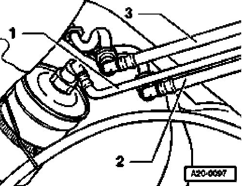 - Remove tensioning strap. When doing this support fuel tank with engine/transmission jack VAG 1383 A.