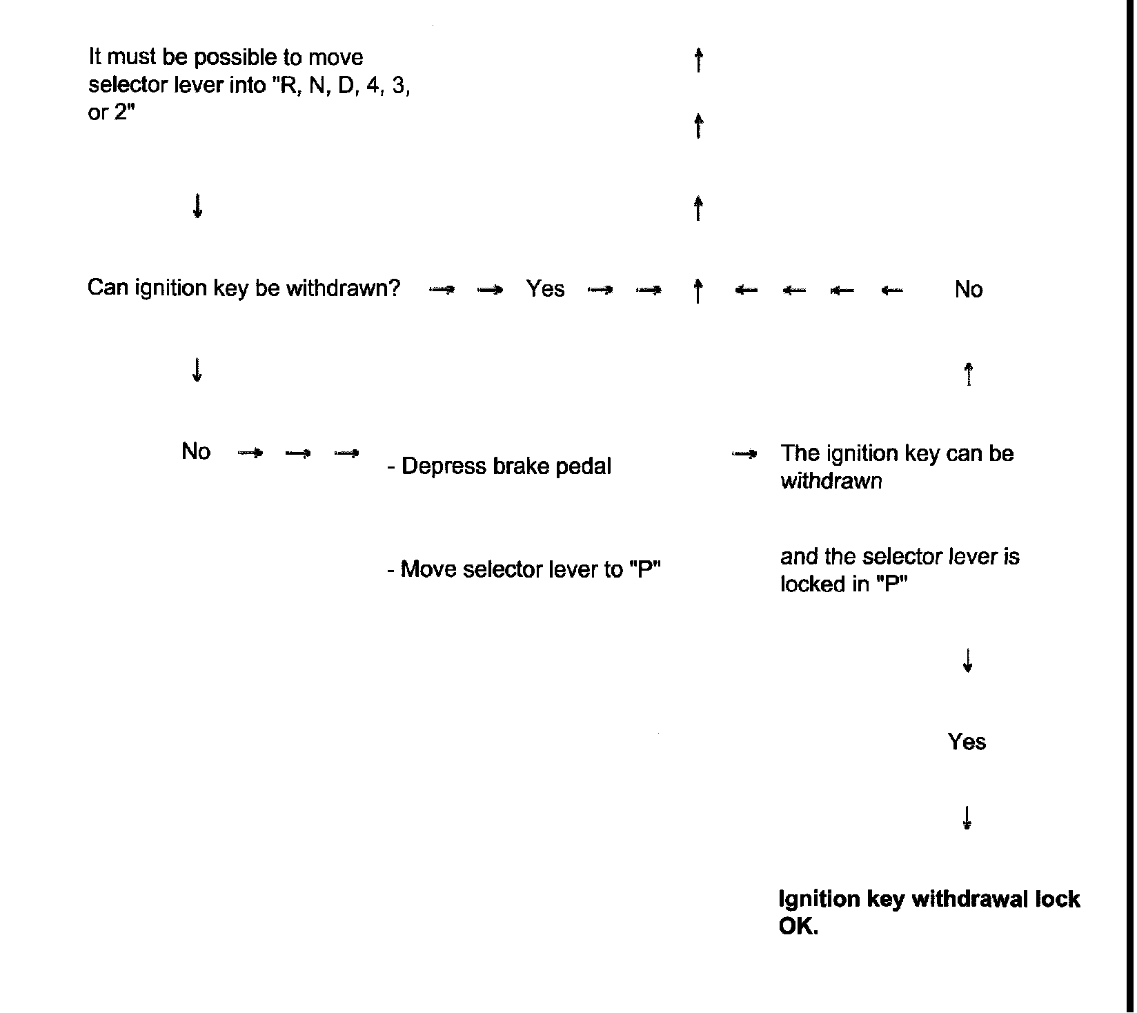 Checking operation of the ignition key withdrawal lock Part 4 of 4