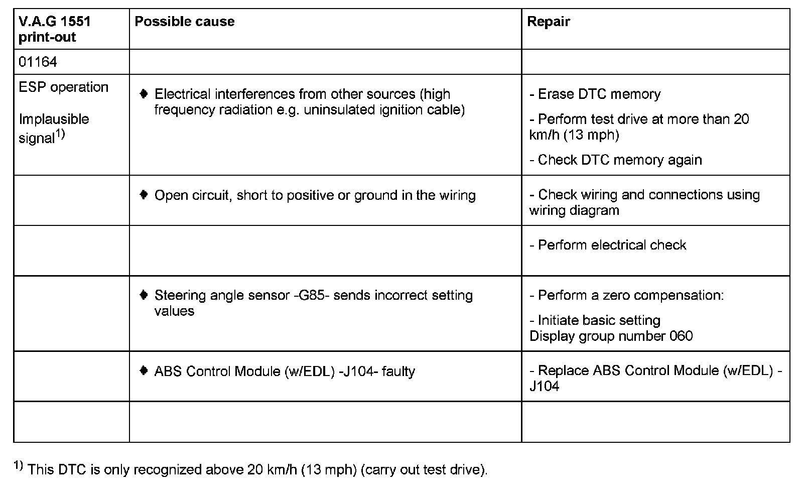 01164 ESP operation / Implausible signal