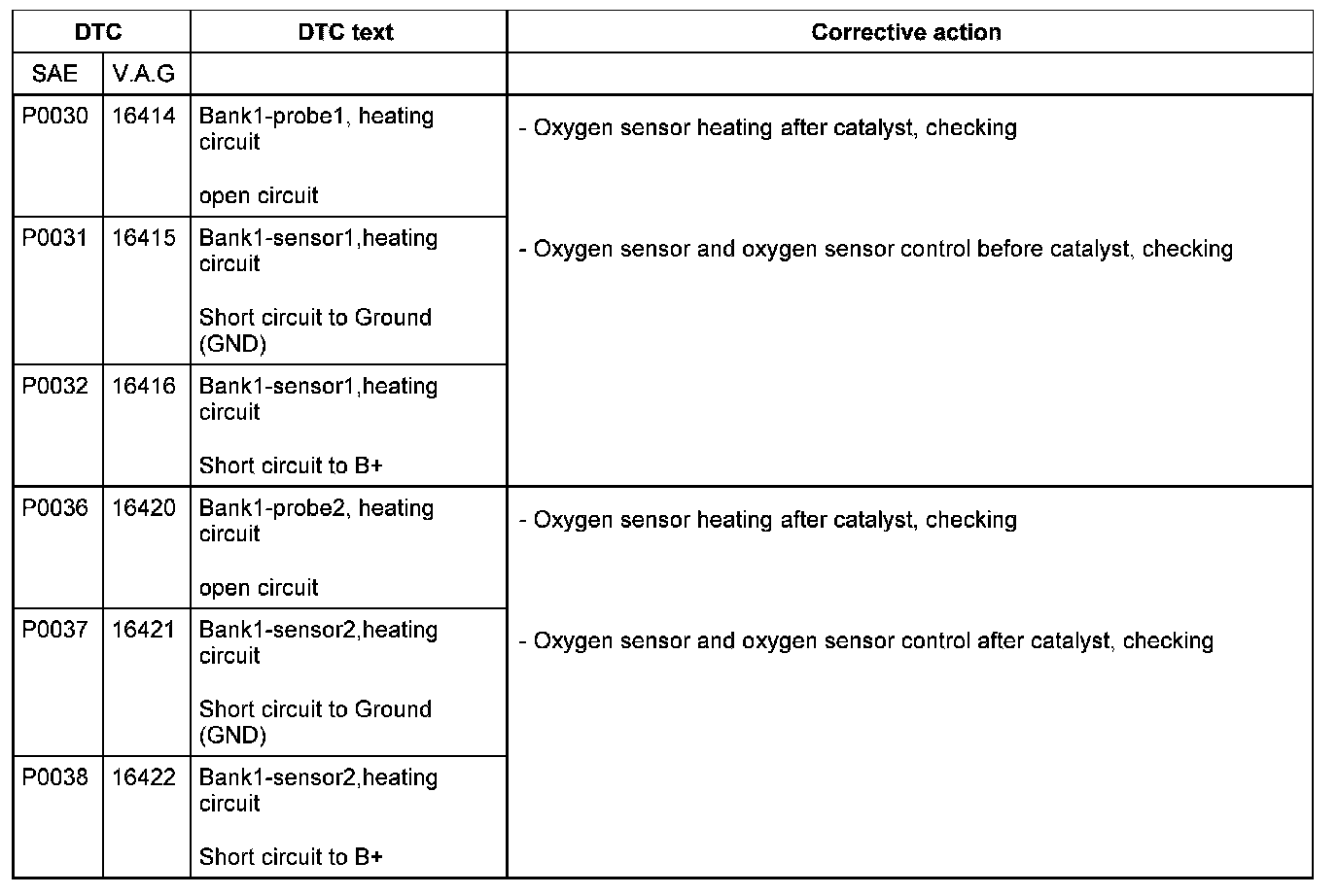 DTC P0030 - P0038: