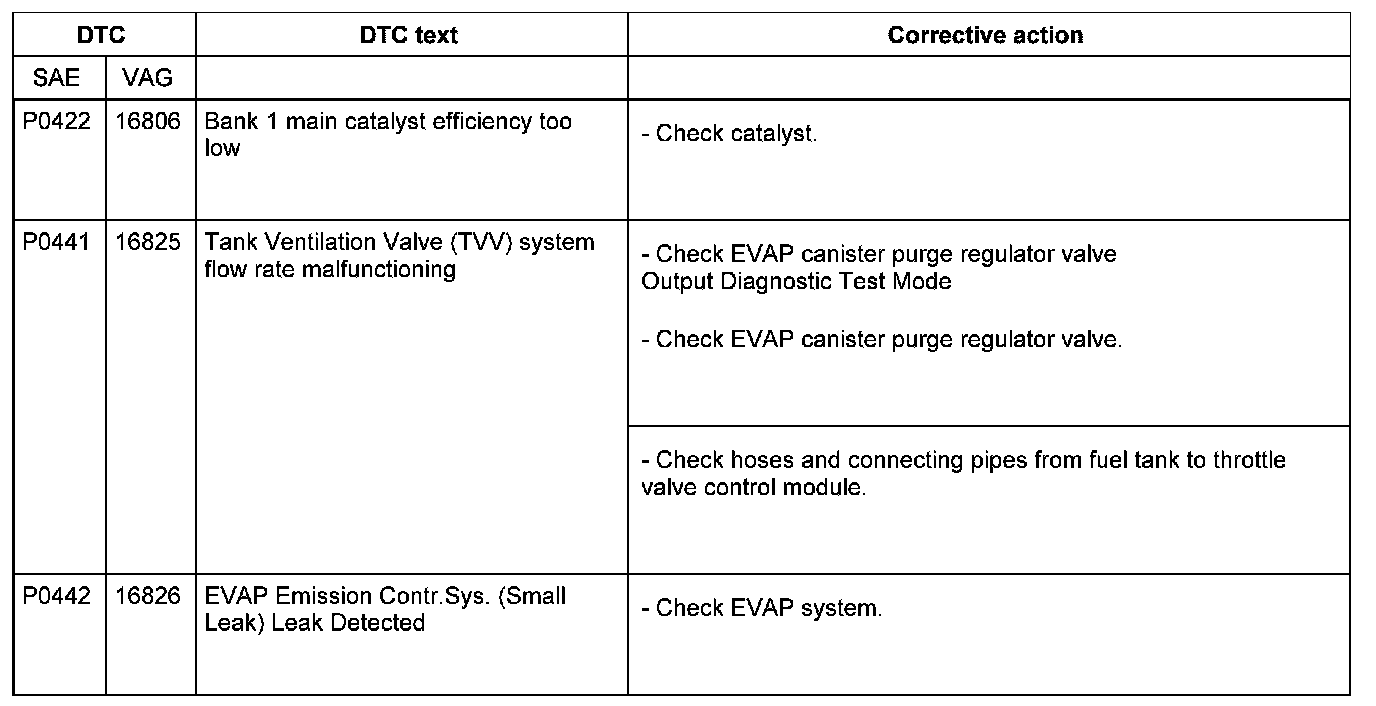 DTC P0422 - P0442: