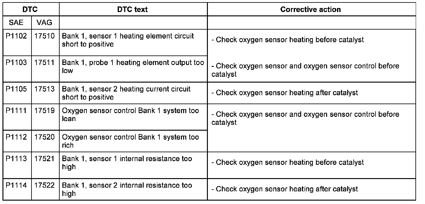 DTC P1102 - P1114: