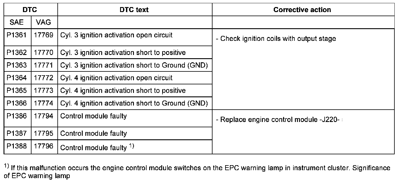 DTC P1361 - P1388: