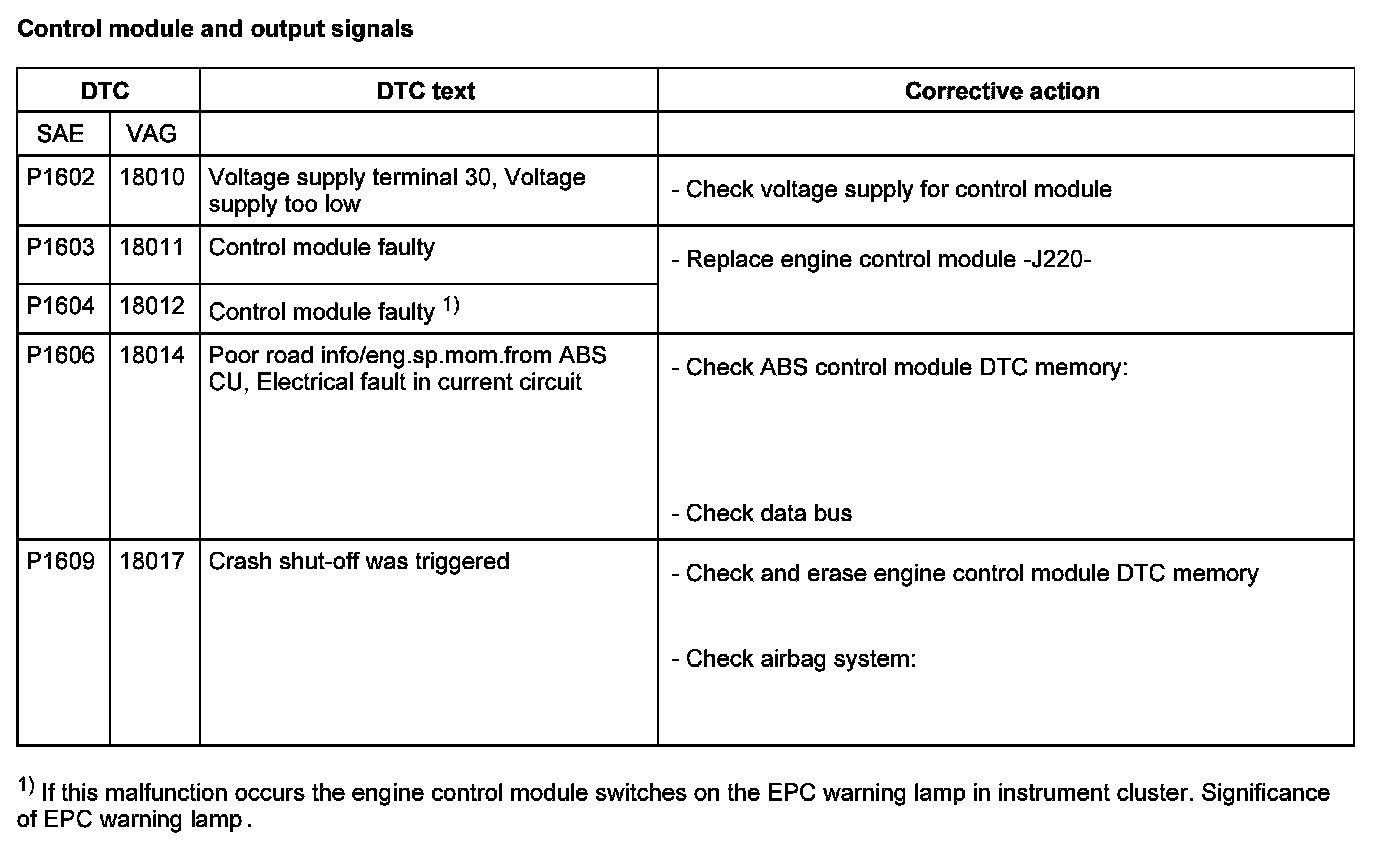 DTC P1602 - P1609: