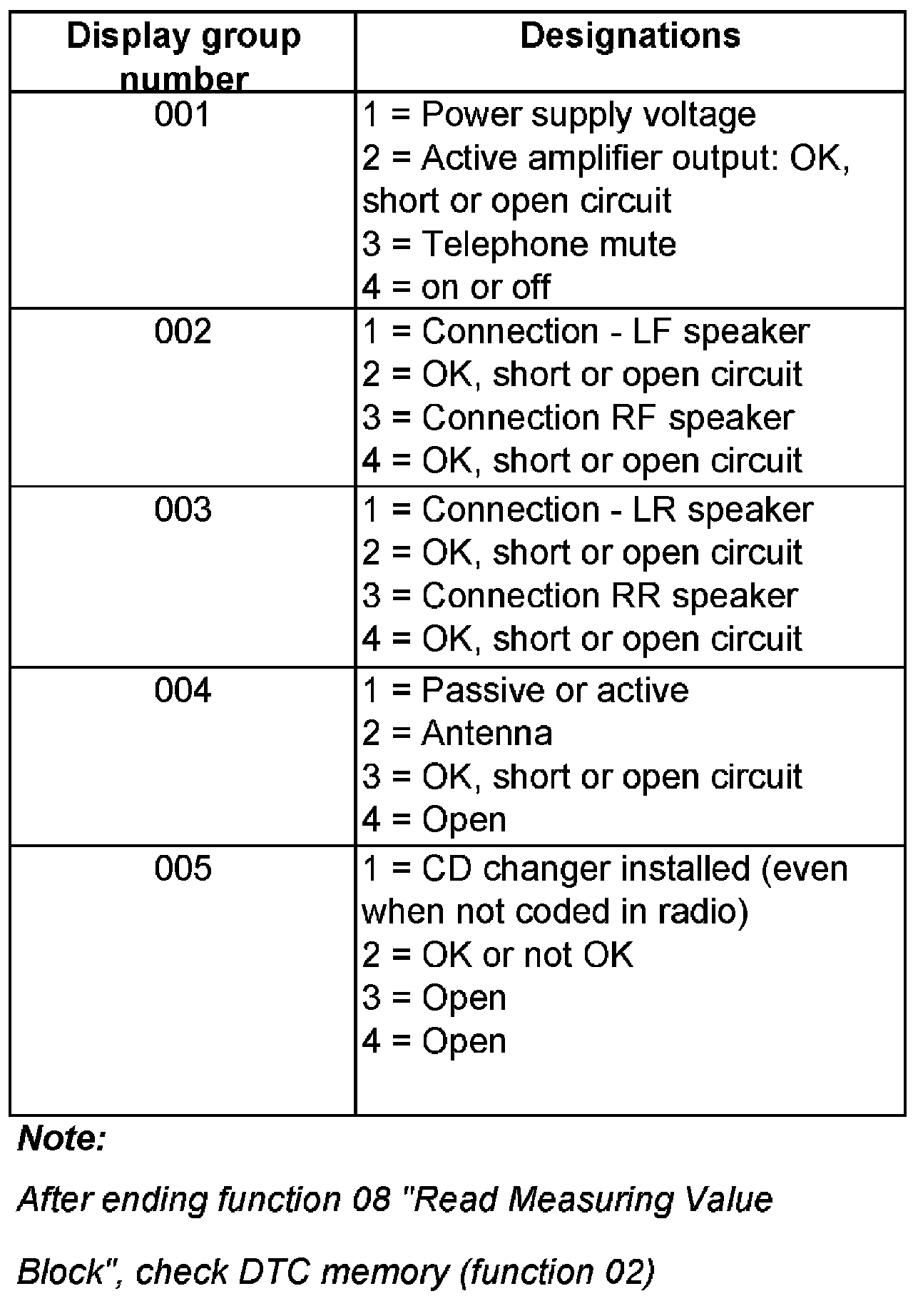 - Press buttons -0- and -8- to select "Read measuring value block" function 08.