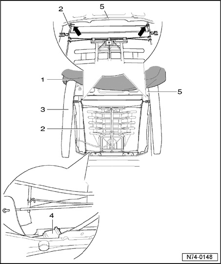 - Remove cushion - 3 - from backrest frame - 5 -.