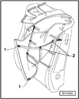 NOTE: If new backrest cover is supplied without upholstery wires - 2 -, use upholstery wires from old backrest cover.