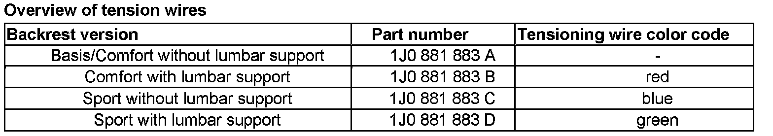 - Determine corresponding tension wire - 1 - according to following table.