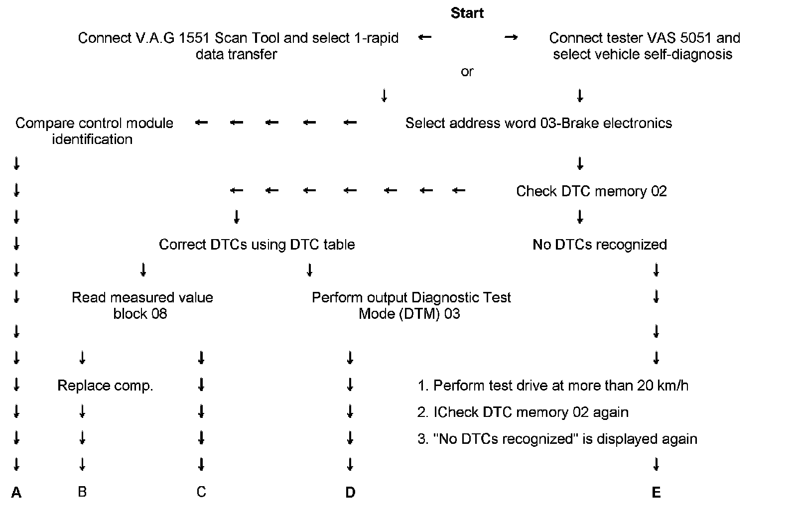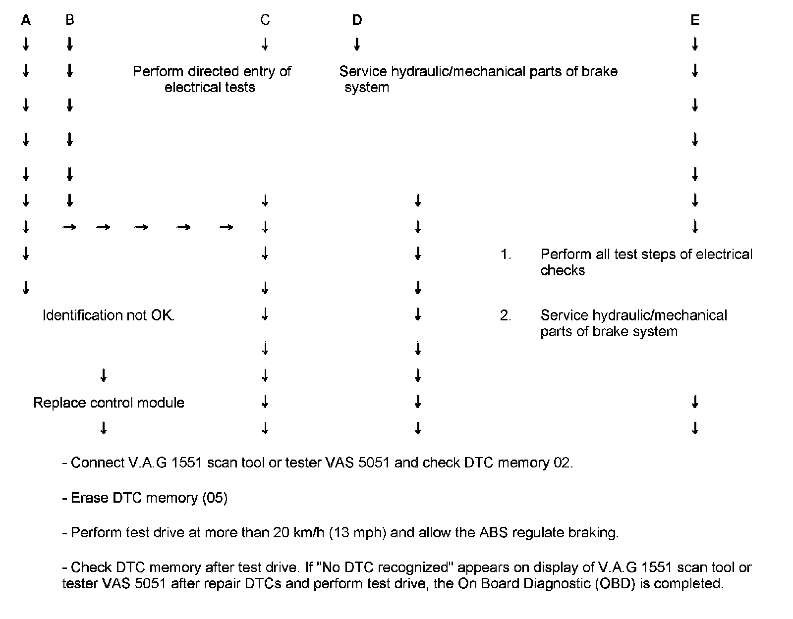 Troubleshooting with V.A.G 1551 scan tool or tester VAS 5051 on ABS Mark 60 (flow chart)