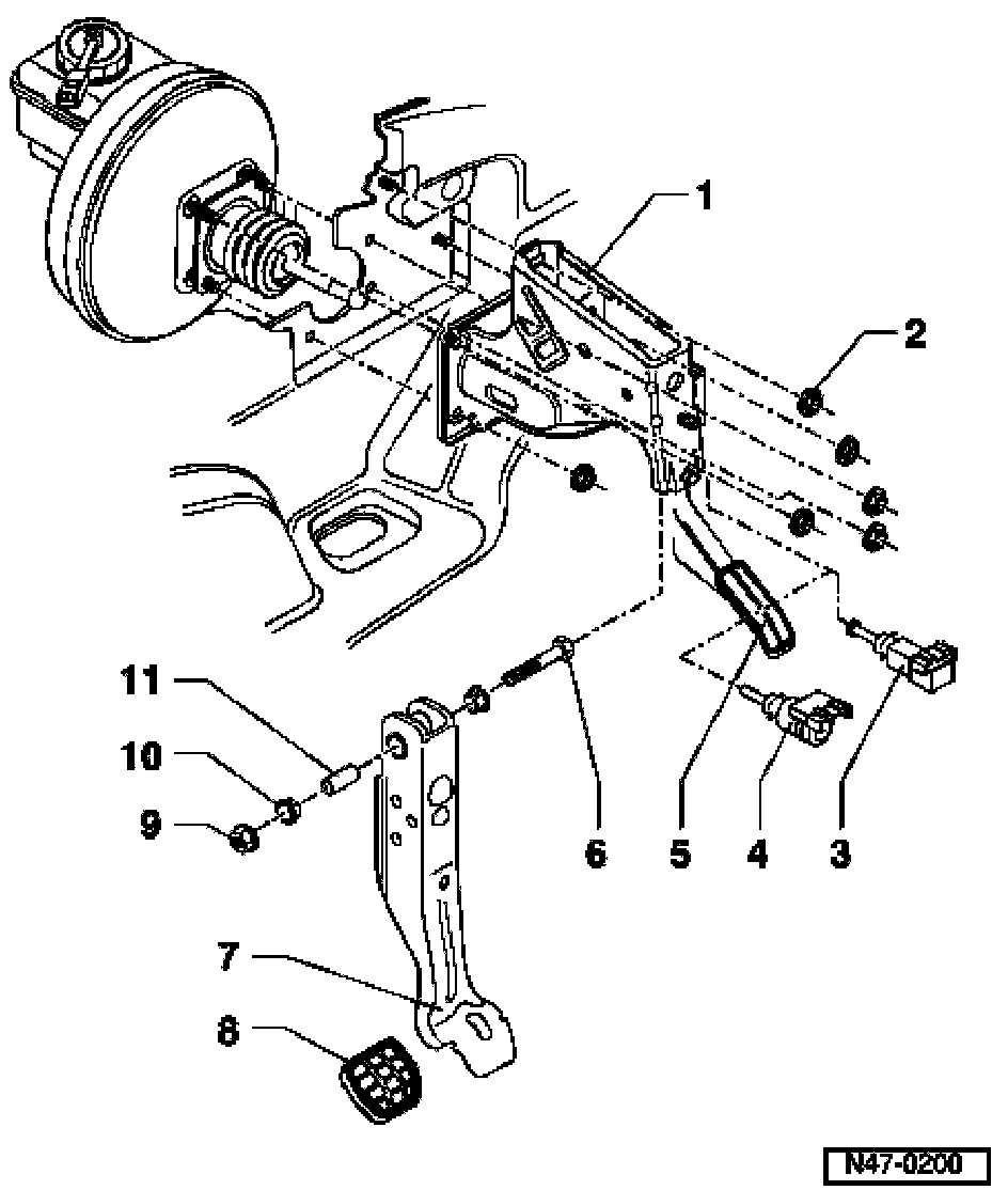 - Before installing new brake light switch, connect brake pedal to brake booster push rod