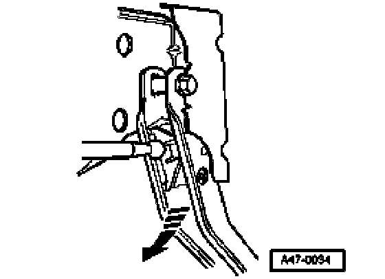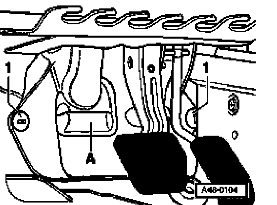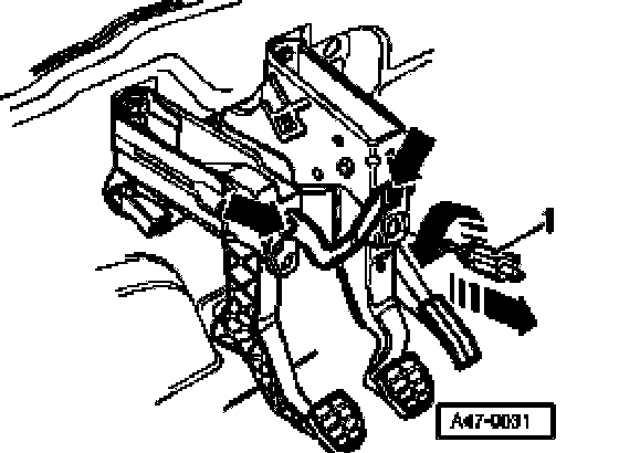 - Remove connecting plate between clutch and brake pedals -arrows- on vehicles with manual transmission.