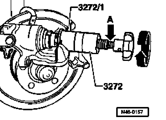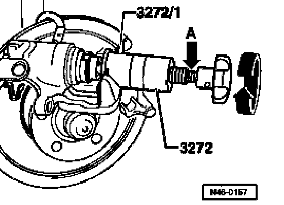 ^ If piston is difficult to move, use a 13 mm (0.512 inch) AF open end wrench on the flats (arrow -A-) provided for this purpose.