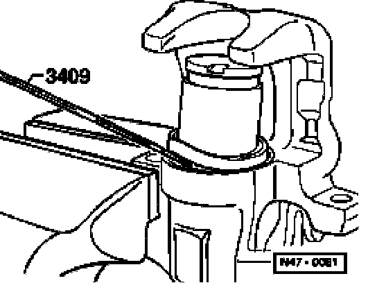- Apply a thin coat of assembly lubricant G 052 150 A2 to piston and seal before inserting.