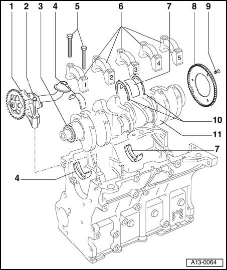 - The crankshaft bearing shells in the bearing caps are only available as a replacement part with a "yellow" color marking.