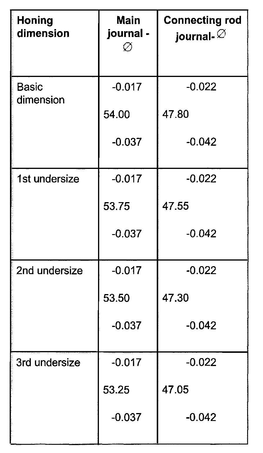 From the factory, the upper bearing shells are allocated to cylinder block with the correct thickness. Colored spots serve to identify bearing thicknesses.