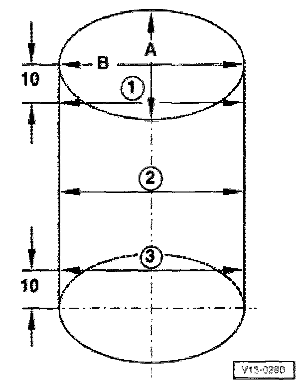 Measure bores at 3 locations in both directions -A- across the engine and -B- in line with crankshaft.