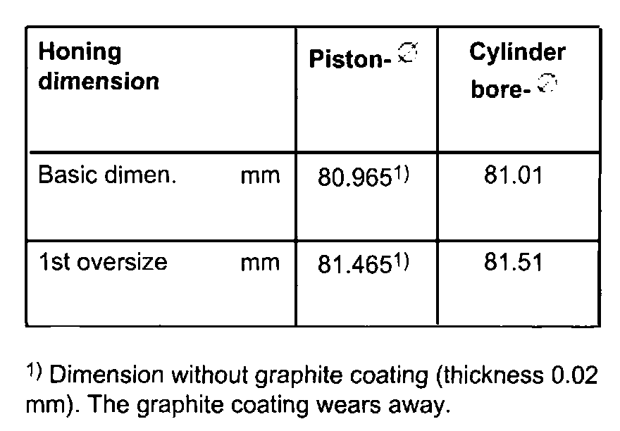 Piston and cylinder dimensions (engine codes AWP, AWW)