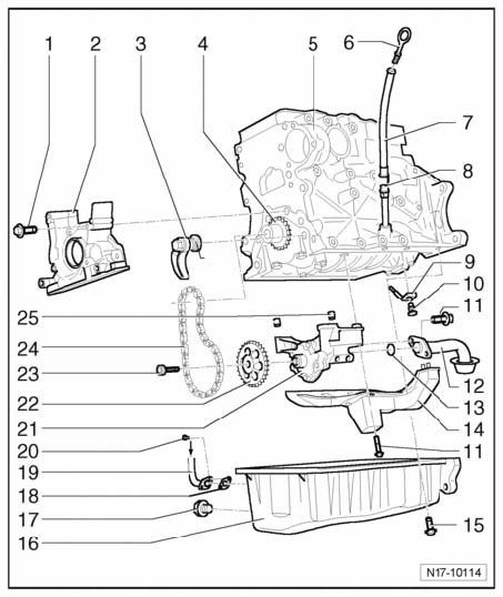 17- Oil drain plug, 30 Nm
